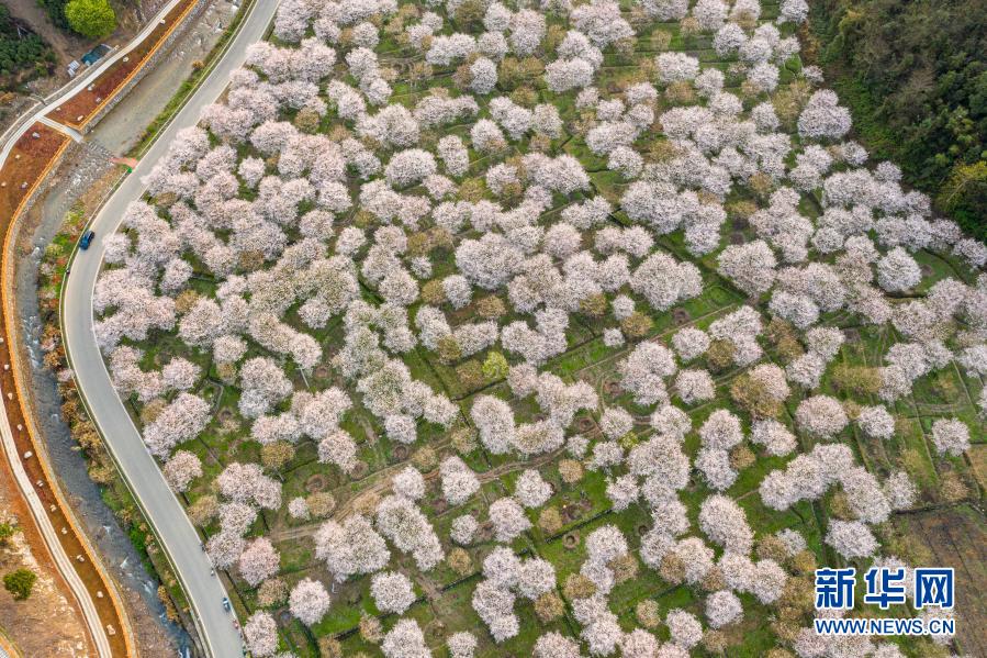近日,位于浙江省紹興市上虞區章鎮鎮張村櫻花谷大片櫻花綻放,花香四溢,吸引游人前來踏青賞花。