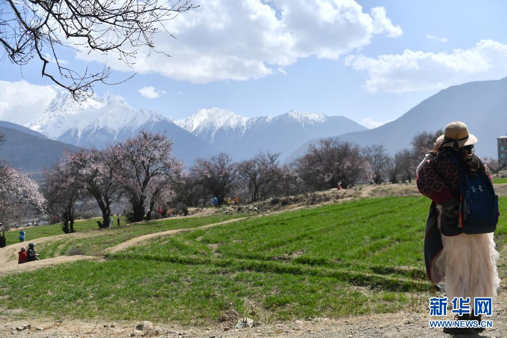 3月28日,游客們來到西藏自治區林芝市索松村欣賞桃花。新華社記者 孫瑞博 攝