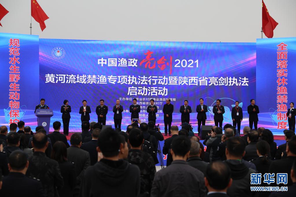 4月1日,“中國漁政亮劍2021”黃河流域禁漁專項執法行動暨陜西省亮劍執法啟動活動在黃河陜西洽川段舉行。