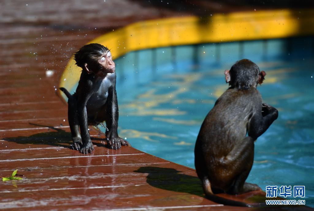 4月4日,南灣猴島保護(hù)區(qū)里的獼猴在上岸后甩去身上的水。