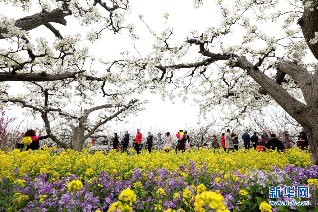 4月5日,游客在河北省石家莊晉州市周家莊鄉梨園內踏青。