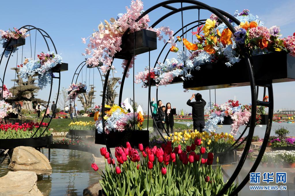 4月5日,游人在江蘇省鹽城市大豐區荷蘭花海景區拍照賞花。
