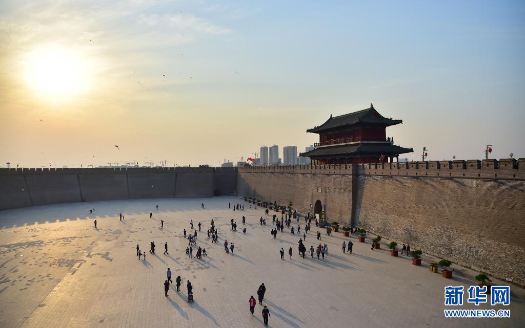 4月4日,游客在石家莊市古城正定南城門景點游玩。