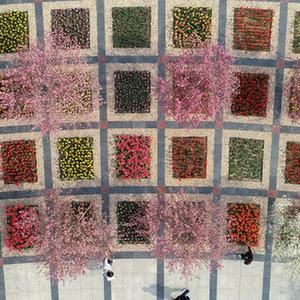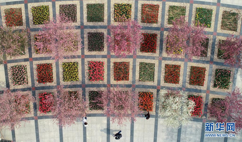4月8日拍攝的石家莊市植物園內的郁金香展(無人機照片)。