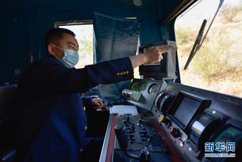中國鐵路成都局集團(tuán)公司成都客運段5633/5634次列車駕駛員趙瑋在發(fā)車前確認(rèn)信號(4月11日攝)。新華社記者 胥冰潔 攝