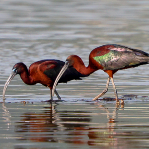 彩鹮在福建省霞浦縣福寧灣灘涂覓食(4月17日攝)。一對(duì)彩鹮近日現(xiàn)身福建省霞浦縣福寧灣灘涂的視頻,經(jīng)當(dāng)?shù)孛襟w播發(fā)后引起轟動(dòng),各地?cái)z影師及當(dāng)?shù)厣鷳B(tài)保護(hù)志愿者紛至沓來,一睹它們的“芳容”。新華社記者 梅永存攝