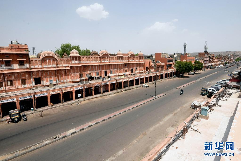 4月18日,印度著名的旅游城市齋浦爾街頭空空蕩蕩。由于新冠疫情不斷惡化,印度實行了更嚴格的封控措施,許多重要的博物館和旅游景點被關閉。新華社發