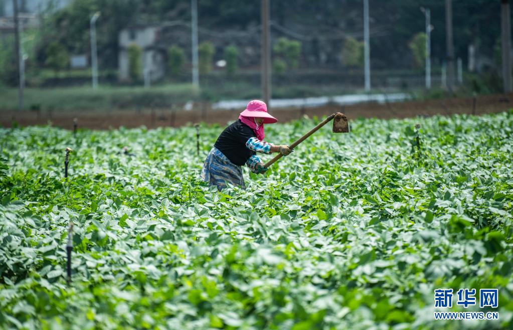 4月20日,貴州省六盤水市六枝特區木崗鎮農民在田地里勞作。