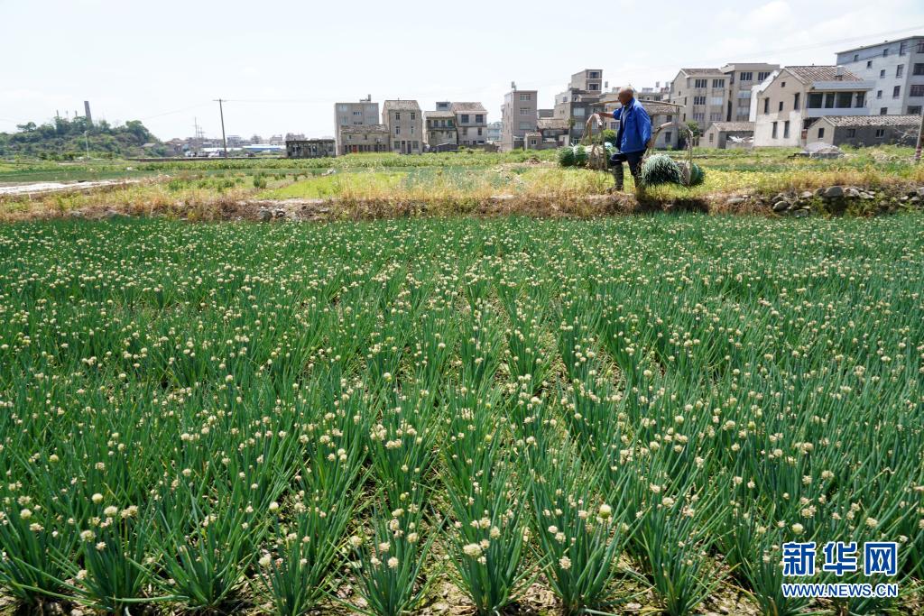 4月20日,浙江省樂(lè)清市雁蕩鎮(zhèn)的香蔥種植專業(yè)合作社社員在挑運(yùn)剛采摘的香蔥。
