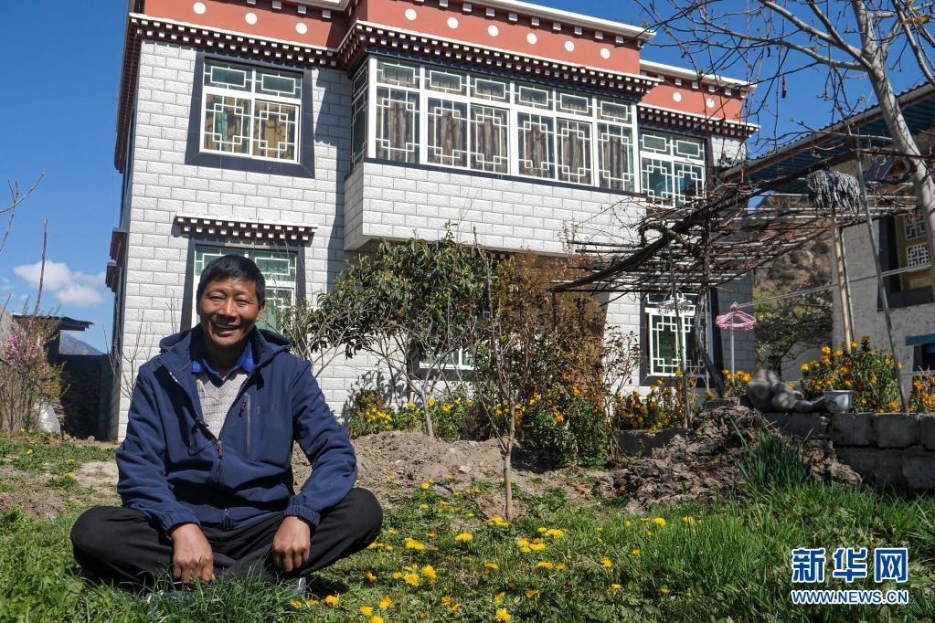 村民格桑旺久在自家新房前(4月6日攝)。新華社記者 洛卓嘉措 攝