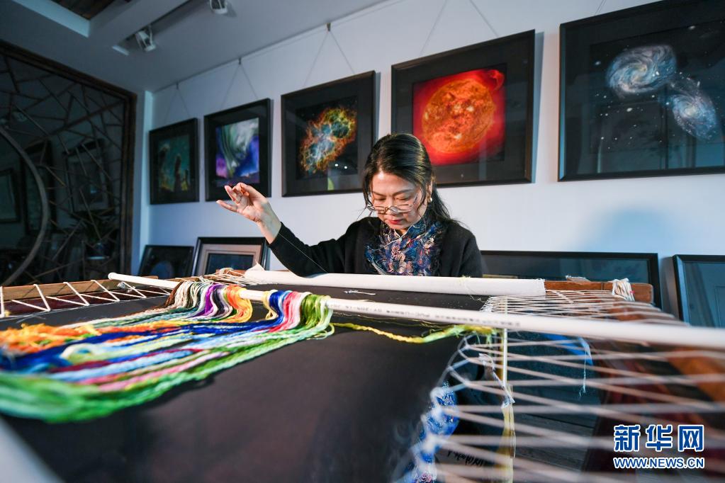 陳英華在位于蘇州高新區鎮湖街道的蘇繡工作室內刺繡(4月14日攝)。新華社記者 李博 攝