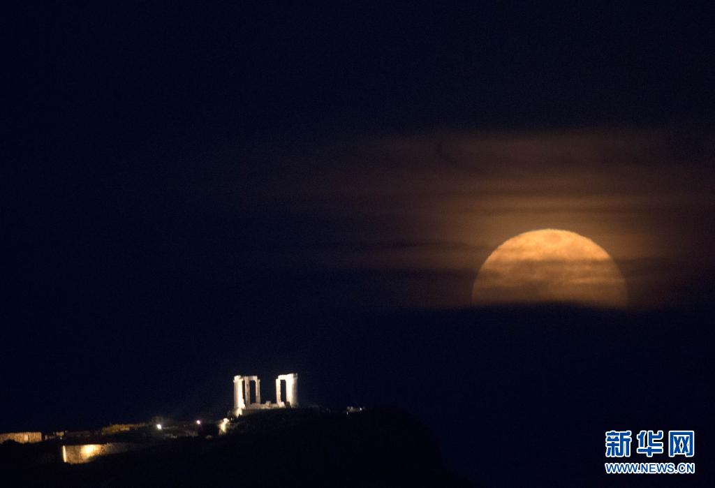 希臘海神廟:“超級月亮”現身夜空