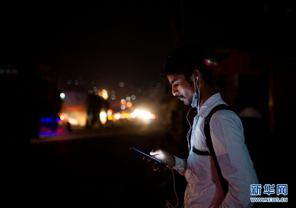 4月28日晚,一名男子在尼泊爾首都加德滿都的路邊等車,準備在封禁措施實施前離開加德滿都返回家鄉。