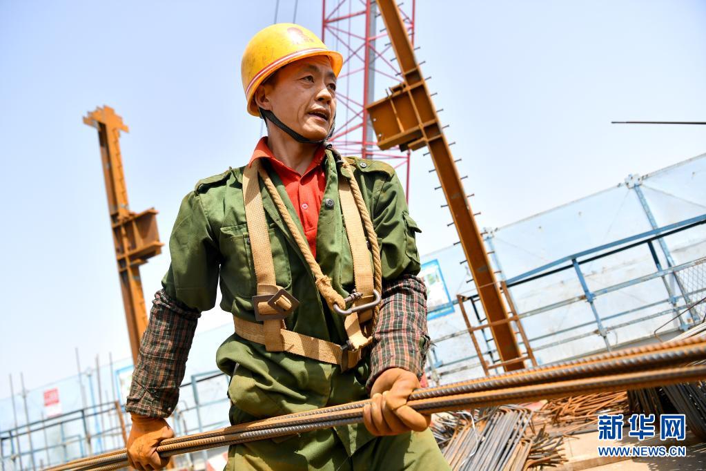 5月1日,在陜西西安未央區一項目施工現場,中建七局四公司的工作人員在作業。