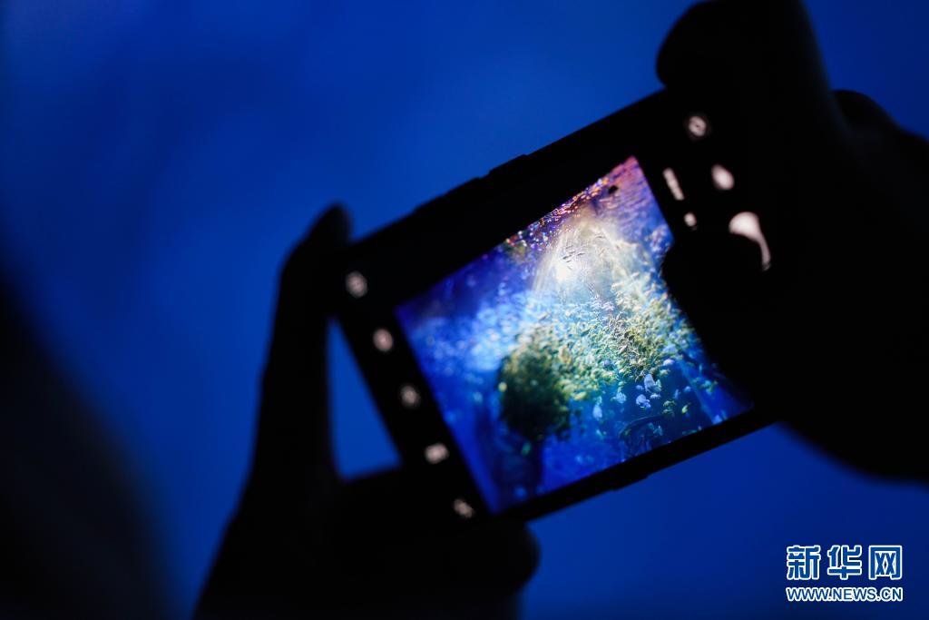 5月1日,在哈爾濱市的波塞冬旅游度假區海底世界觀賞區,參觀者在拍照留念。