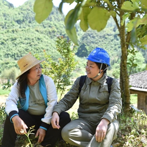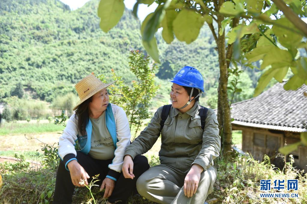 4月30日,在恩施咸豐縣清坪鎮馬家坪村,林麗(右)和村民在路邊拉家常。
