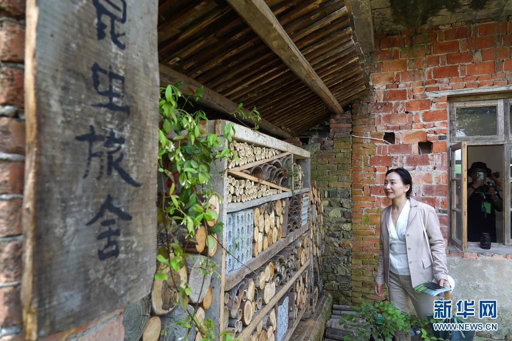 5月1日,參觀者在浮梁縣寒溪村參觀藝術(shù)作品《昆蟲旅舍》。