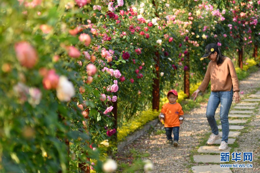 5月2日,游客在浙江湖州吳興區(qū)埭溪鎮(zhèn)莫家柵村四季玫瑰莊園內(nèi)游玩。新華社記者 黃宗治 攝