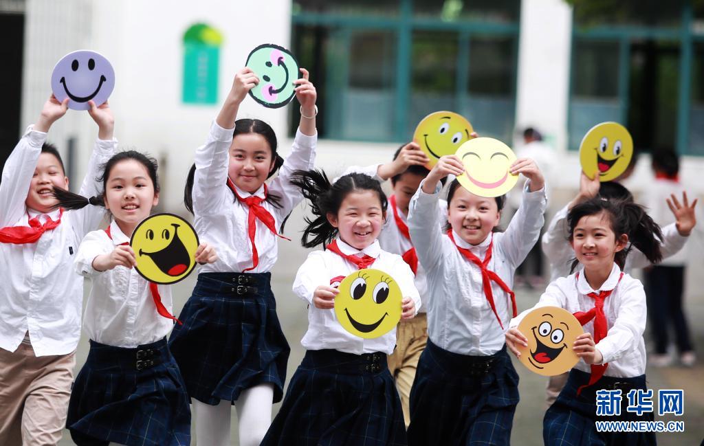 5月7日,江蘇省揚(yáng)州市汶河小學(xué)的學(xué)生們?cè)凇靶τ澜缥⑿θ铡被顒?dòng)中手舉笑臉卡做游戲。世界精神衛(wèi)生組織將每年的5月8日定為“世界微笑日”,希望通過(guò)微笑促進(jìn)人類(lèi)身心健康,增進(jìn)社會(huì)和諧。新華社發(fā)(孟德龍 攝)