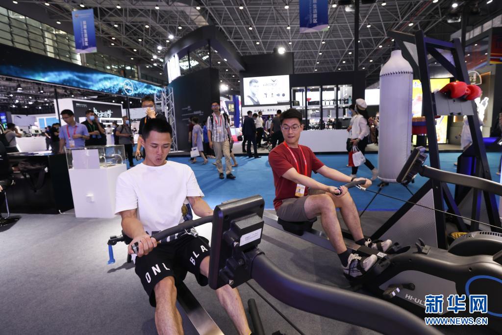 首屆中國國際消費品博覽會在海南省??谑信e行,其中包括旅居生活和服務消費等展區。參展商帶來的運動器械等產品吸引了諸多觀眾現場體驗、咨詢。