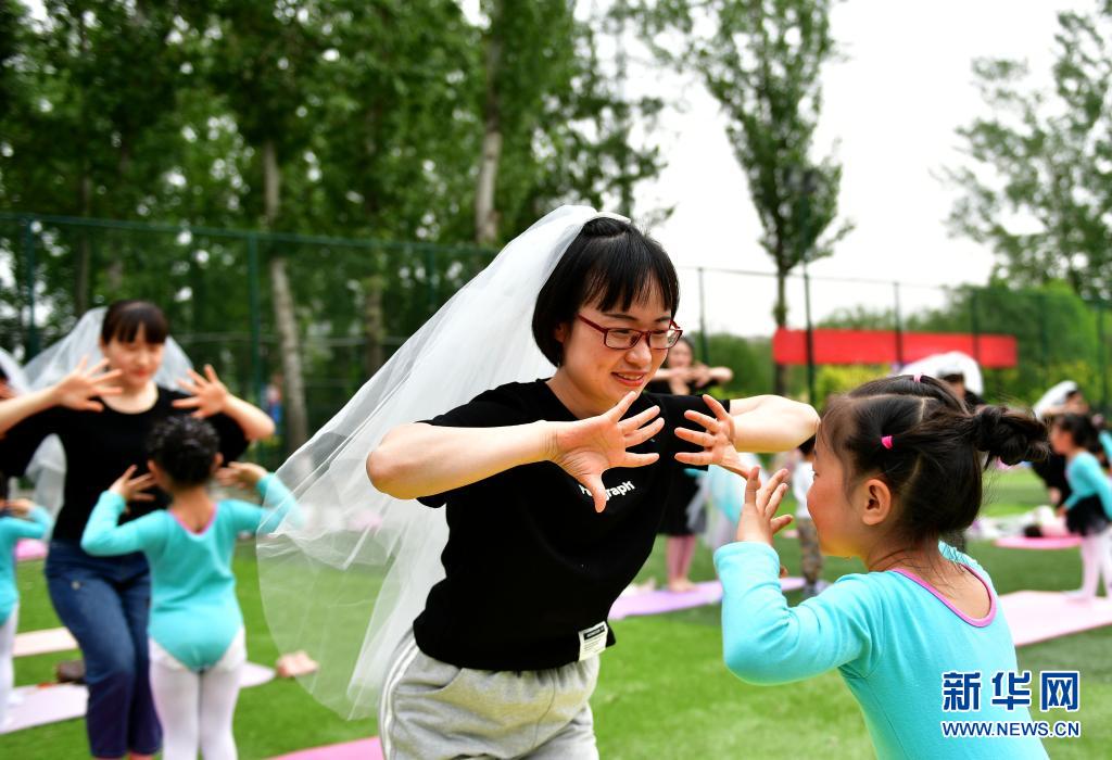 5月9日,在河北省邯鄲市館陶縣奧林匹克公園舉行的母親節主題活動中,媽媽與孩子一起做親子游戲。