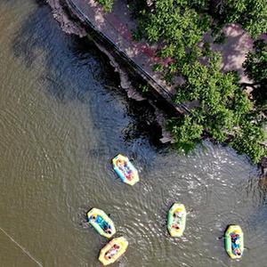 5月12日,游客在河北省邢臺市天河山景區漂流。