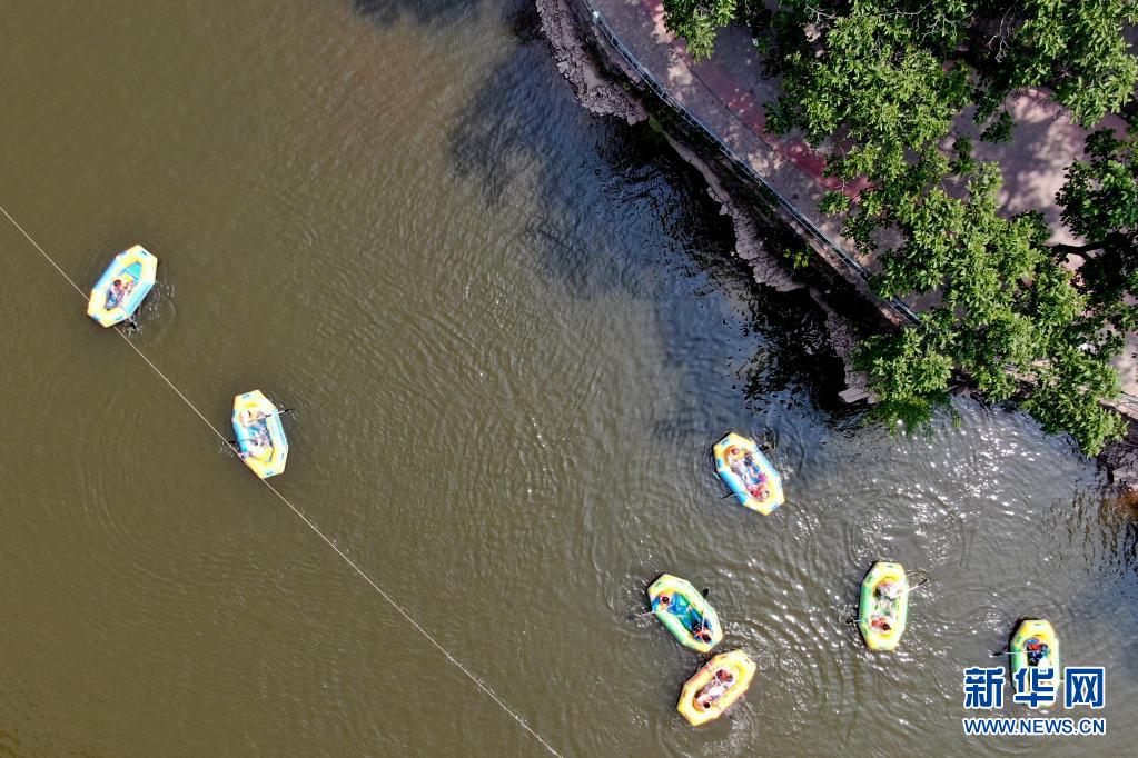 5月12日,游客在河北省邢臺(tái)市天河山景區(qū)漂流(無人機(jī)照片)。
