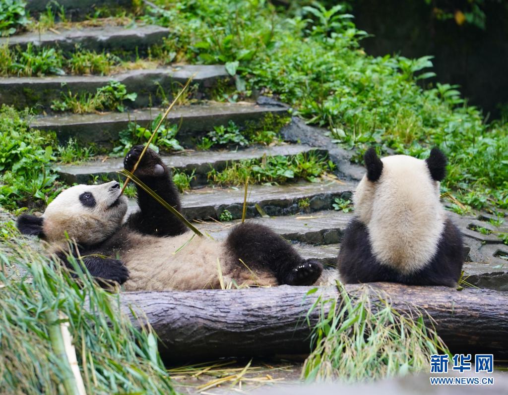 這是5月15日在中國(guó)大熊貓保護(hù)研究中心雅安碧峰峽基地拍攝的大熊貓。