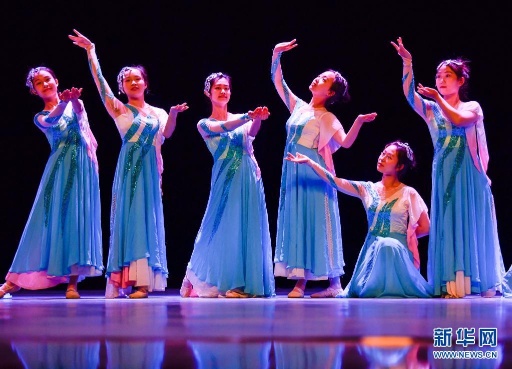 天津理工大學聾人工學院的舞蹈隊員們在學校的劇場里進行彩排(5月10日攝)。新華社發(孫凡越攝)