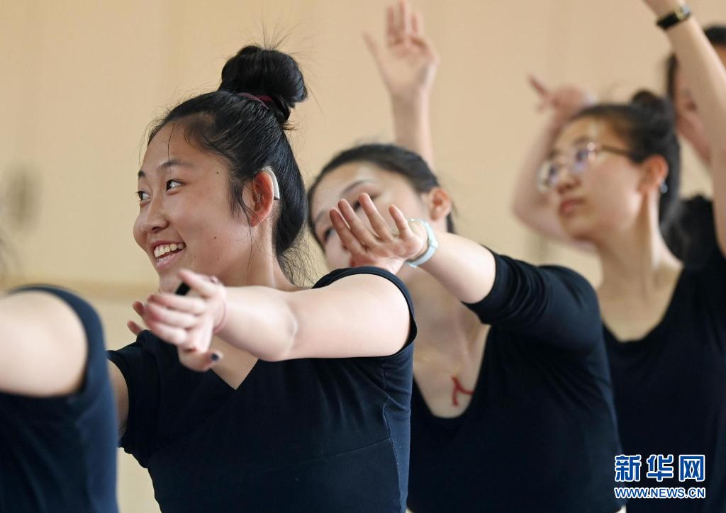 天津理工大學聾人工學院的舞蹈隊員們在學院的排練廳里練習舞蹈動作(5月8日攝)。新華社記者 李然 攝
