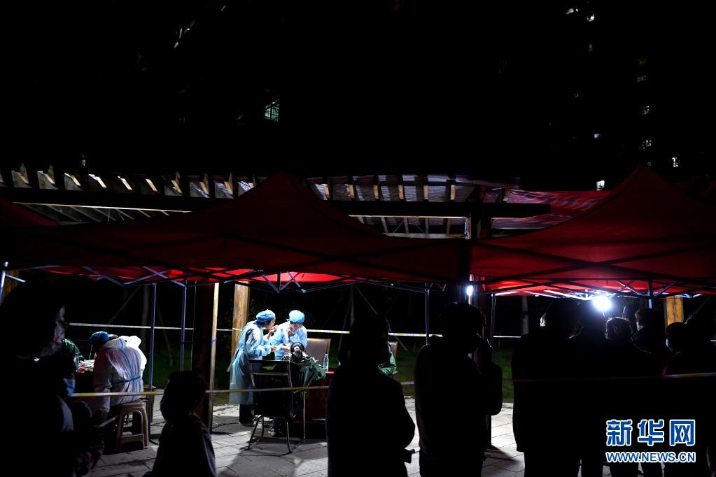 5月16日晚,安徽省合肥市肥西縣上派鎮多個小區啟動第二輪全員新冠肺炎疫情核酸檢測。檢測人員和社區工作者深夜值守,奮戰在疫情防控一線。