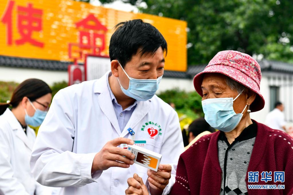 5月21日,在棗莊市臺(tái)兒莊區(qū)澗頭集鎮(zhèn)褚提樓村,“學(xué)黨史惠民”醫(yī)療小分隊(duì)為群眾開(kāi)展送醫(yī)、送藥服務(wù)。