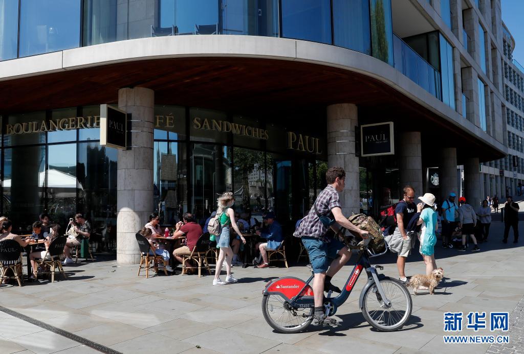 6月1日,人們在英國倫敦一家咖啡廳的戶外餐飲區就餐。