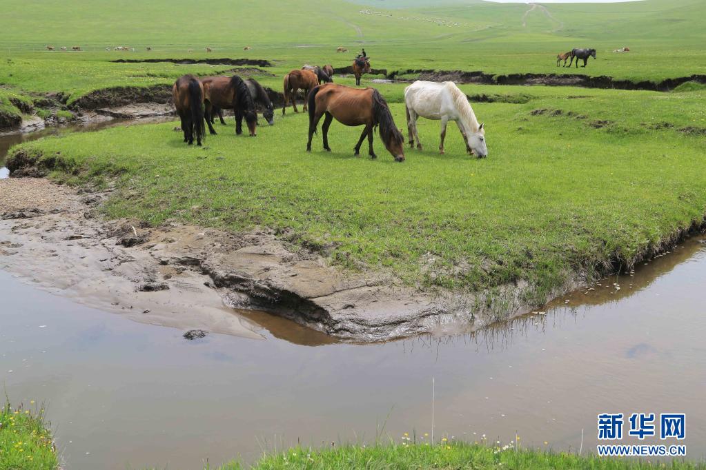 6月8日,牲畜在甘肅省定西市岷縣境內的狼渡草原上吃草。