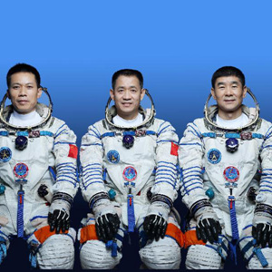 神舟十二號飛行任務乘組:聶海勝(中)、劉伯明(右)、湯洪波(左)。 新華社發(徐部 攝)