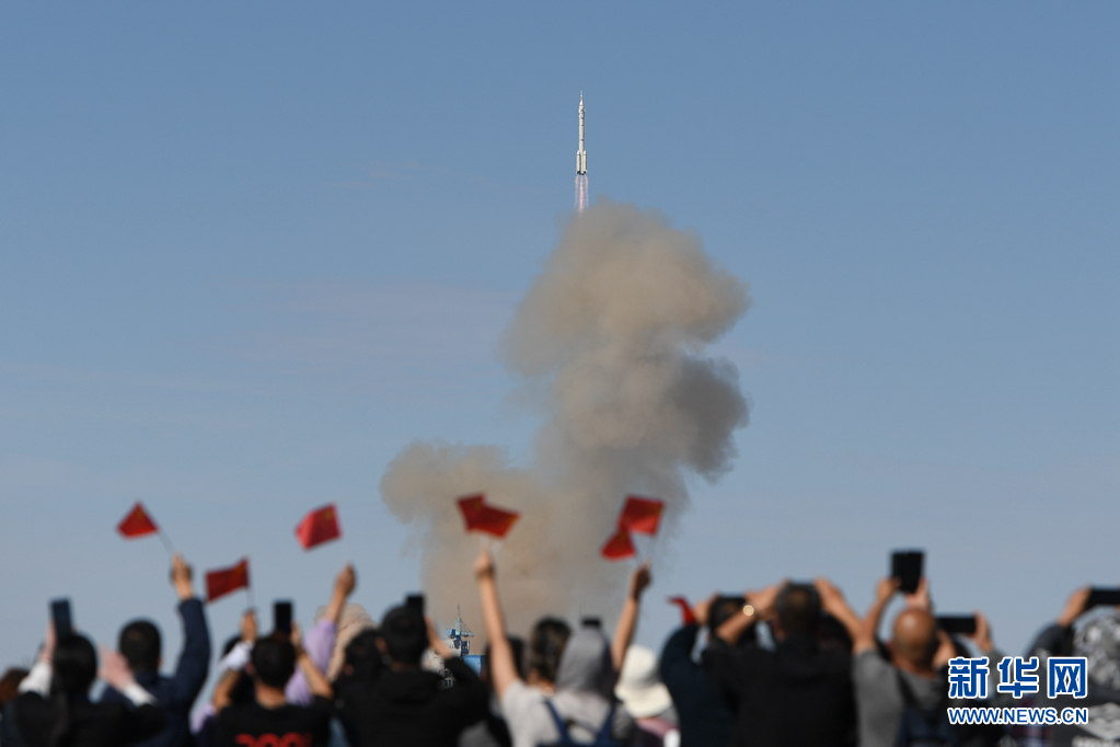 6月17日,搭載著神舟十二號(hào)載人飛船的長征二號(hào)F遙十二運(yùn)載火箭在酒泉衛(wèi)星發(fā)射中心點(diǎn)火升空。新華社記者 劉磊 攝