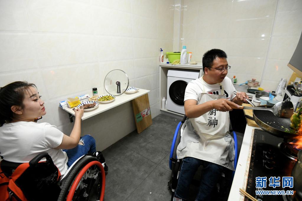 在山西省呂梁市石樓縣,周海云(右)和關美在家中做飯(6月2日攝)。新華社發(劉亮亮攝)
