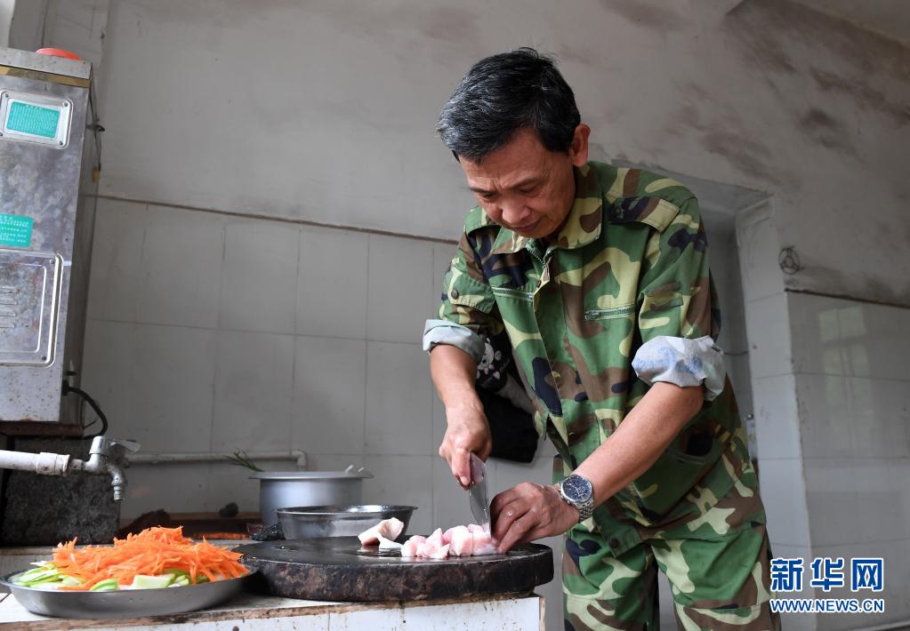 在廣西上思縣那琴鄉(xiāng)中心小學(xué)逢通村教學(xué)點,梁志雄老師在給學(xué)生做午飯(6月16日攝)。新華社記者 陸波岸 攝