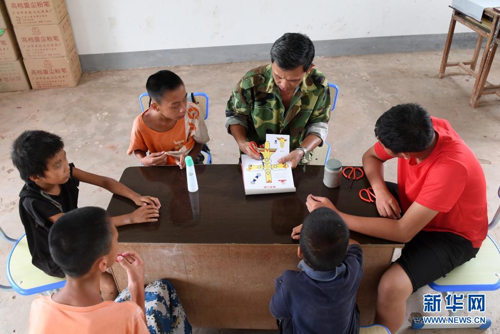 在廣西上思縣那琴鄉中心小學逢通村教學點,梁志雄老師在教學生做手工(6月16日攝)。新華社記者 陸波岸 攝