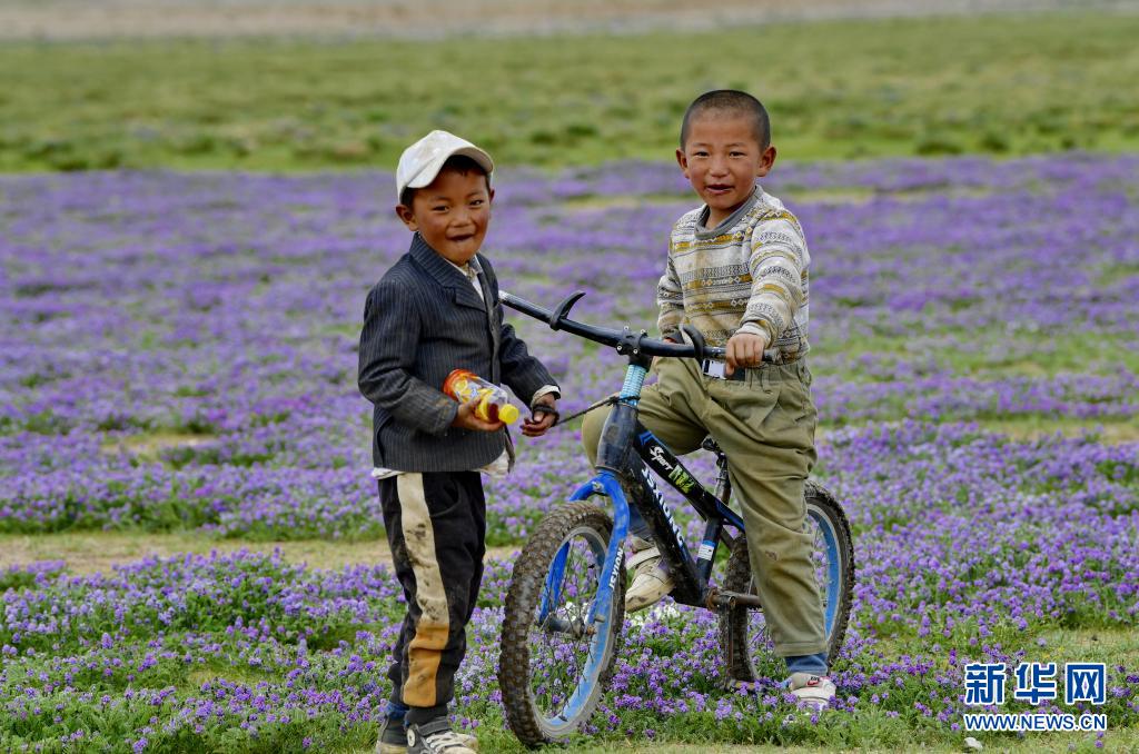 西藏當(dāng)雄縣格達(dá)鄉(xiāng)格達(dá)村的兒童在草場(chǎng)玩耍(6月19日攝)。