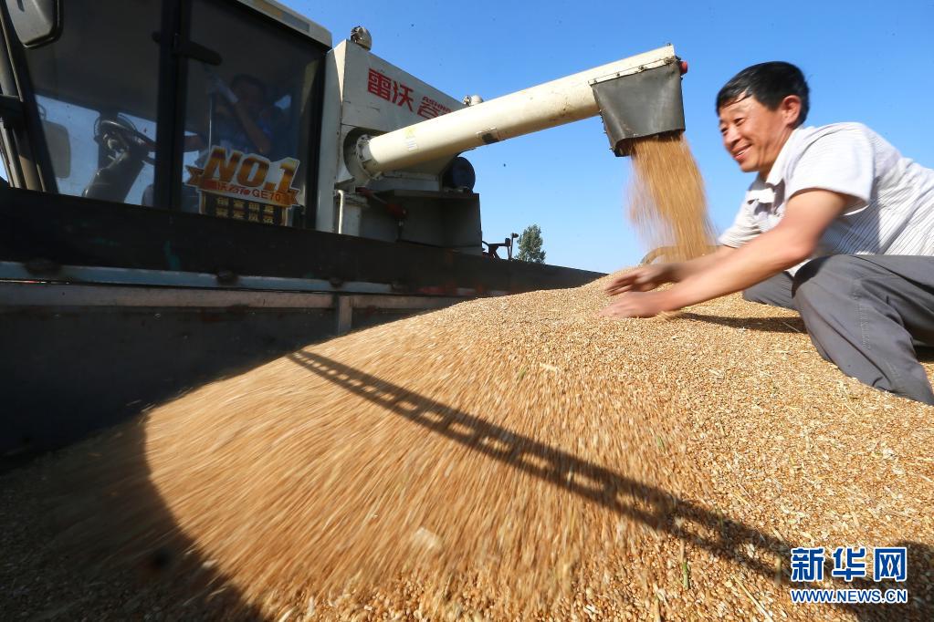 近日,山東省青島市即墨區的小麥陸續開鐮收割,農民利用晴好天氣加緊收獲小麥,確保顆粒歸倉。據山東省農業農村廳統計,截至6月19日17時,我國第二大小麥主產區山東省已收獲小麥5224.7萬畝,占應收面積的87.3%,已近九成。