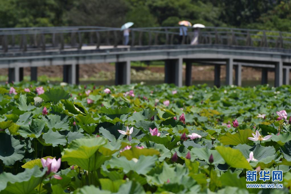 6月21日在江蘇省南京市板橋新城蓮花湖拍攝的荷花。