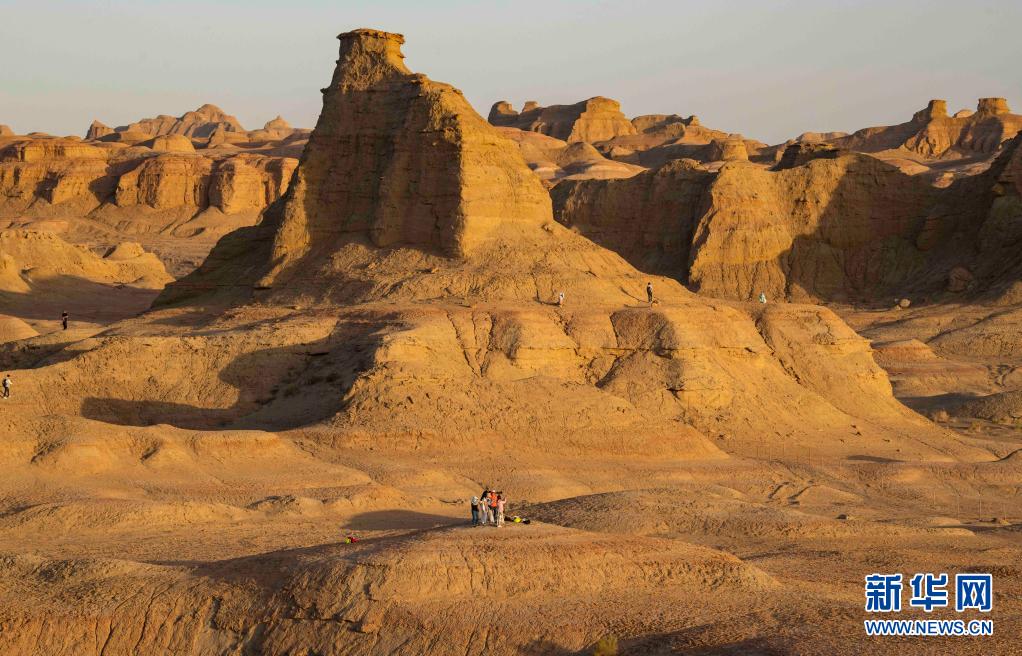 游客在新疆克拉瑪依烏爾禾世界魔鬼城景區內拍照游玩(6月21日攝)。