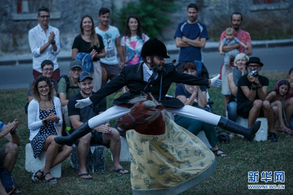 6月30日傍晚,藝術工作者在斯洛文尼亞首都盧布爾雅那進行街頭戲劇節表演。