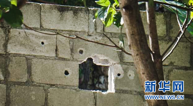 7月7日,在海地太子港,海地總統莫伊茲住所外墻上的彈孔清晰可見。