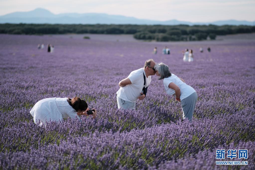 7月13日,人們在西班牙卡斯蒂利亞-拉曼查自治區布里韋加的薰衣草田拍照。