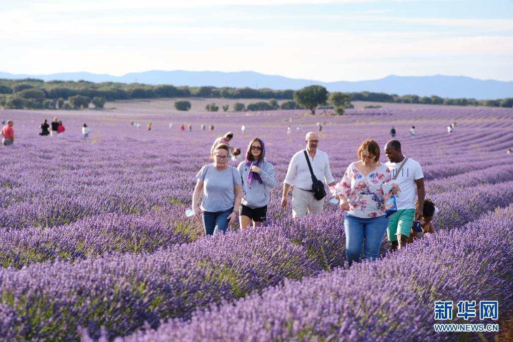 7月13日,人們?cè)谖靼嘌揽ㄋ沟倮麃?拉曼查自治區(qū)布里韋加的薰衣草田游玩。