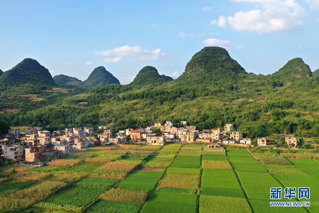 盛夏時節,廣西平樂縣張家鎮田園郁郁蔥蔥,美不勝收(7月14日攝,無人機照片)。