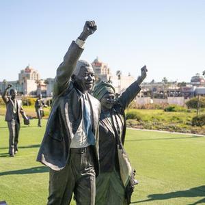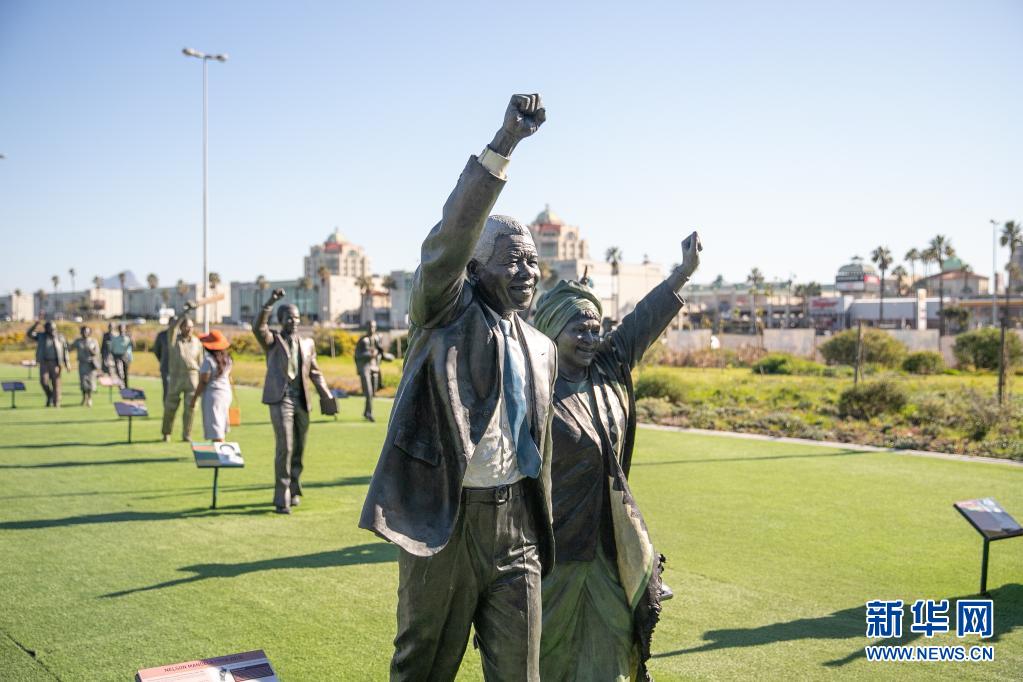 這是7月18日在南非開普敦拍攝的南非前總統納爾遜·曼德拉和其夫人溫妮·馬迪基澤拉-曼德拉的銅像。