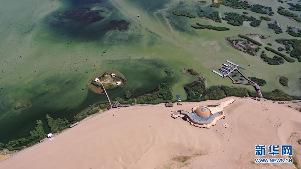 這是7月31日拍攝的寧夏沙湖景區(qū)(無人機照片)。